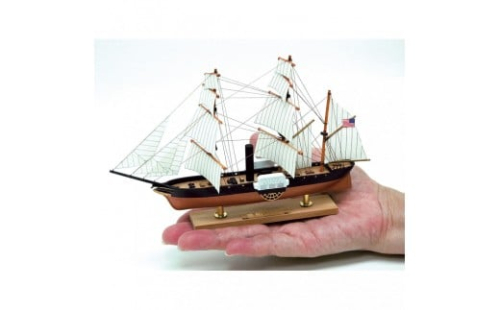 手のひらサイズのミニ帆船。船体は積層構造で美しい船体形状が再現できます。