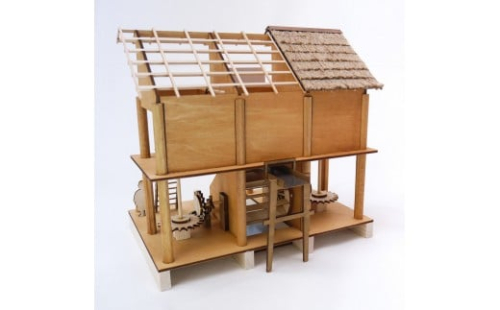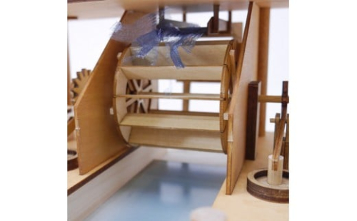 木製パーツを手順通りに組立てれば「水磨様」の仕組みを楽しく学べます。