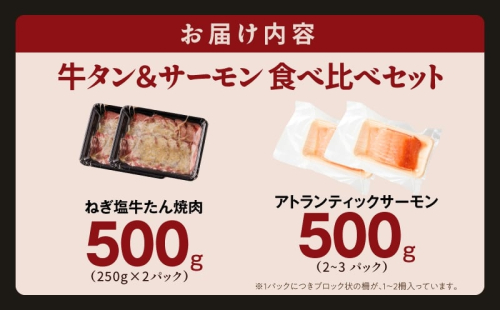 - 牛タン&サーモン 食べ比べ セット 総量1kg【牛肉 焼肉 牛たん 海鮮 サーモン お楽しみ 福袋 別送】 099S024