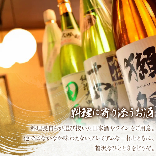 料理長自らが選び抜いた日本酒やワインをご用意。