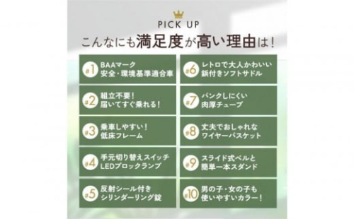 約90項目もの厳しい検査をクリアした自転車だけに貼られている、日本の自転車安全基準「BAA」マークも取得済み。