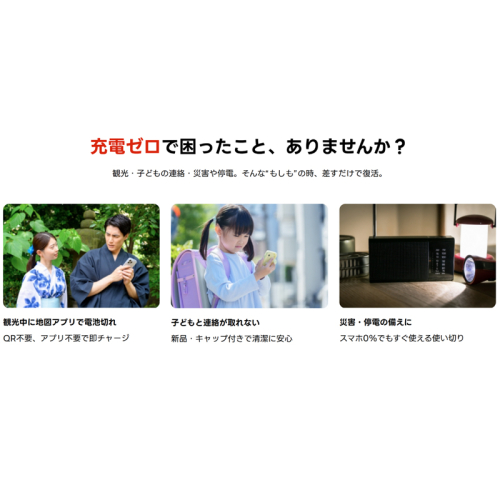 災害時の備蓄はもちろん、外出するお子様の「お守り電源」、旅行や仕事の急な充電切れにもピッタリ。