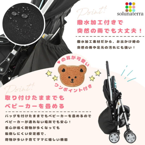 ワンポイントのクマさんの刺繍がかわいい!ベビーカーの収納をサポートするアンダーバッグ。