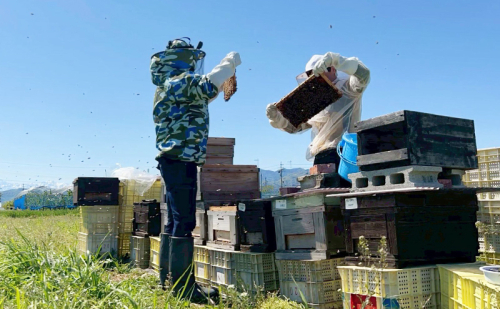 長野市・川中島平で大正時代から約100年、4代にわたって続く果樹園です。 信濃川(千曲川)と犀川が出会うこの土地は、昼夜の寒暖差が大きく、果樹や花々が元気に育つ自然豊かな地域。 果樹づくりと養蜂をともに行い、ミツバチたちが果樹の受粉を手伝いながら集めたはちみつをお届けしています。