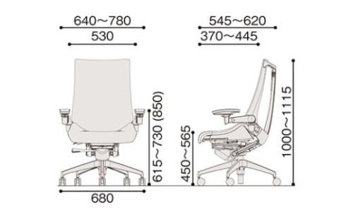【サイズ】W640~780(脚:680mm)×D545~620×H1000~1115mm(SH450~565mm)