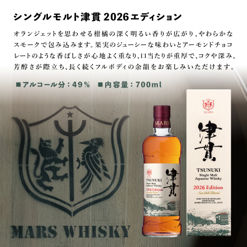 - 【マルス津貫蒸溜所】シングルモルト津貫 2026 エディション(700ml) 本坊酒造 ウイスキー ウィスキー 49% 49度 鹿児島県南さつま市 お酒 洋酒 モルト マルス