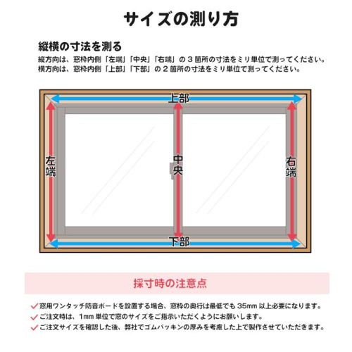 ・窓用ワンタッチ防音ボードを設置する場合、窓枠の奥行は最低でも35mm以上必要になります。