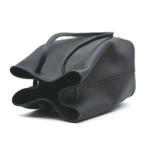 • 益子の革工房maharoの巾着バッグ(M)ブラック (AX140-3)