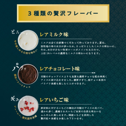 - フレーバー:レアミルク・レアいちご・レアチョコレート