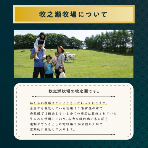 全国でも放牧している牧場は1割前後の中で、当牧場では販売している全ての商品は放牧されている牛のみを使用しており、 東京ドーム約5個分にも及ぶ広大な放牧地で5月~晩秋の昼夜、冬の間も運動ができるように、野球場1面分程の土地で定期的に放牧しております。