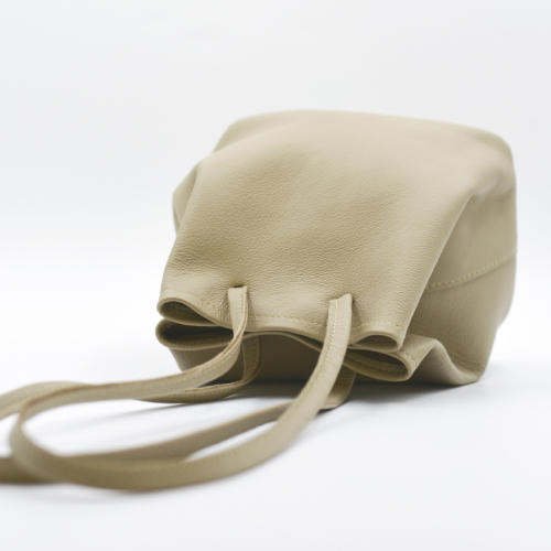 手馴染みのよいソフトな牛革を使用した巾着バッグです。