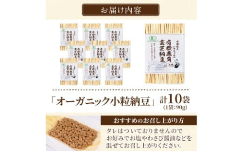 • K-599-C 国産!有機JAS認定・オーガニック小粒納豆(計10袋・90g×10袋)【お多福たまご】霧島市 自然栽培 大豆 納豆 朝食 小粒