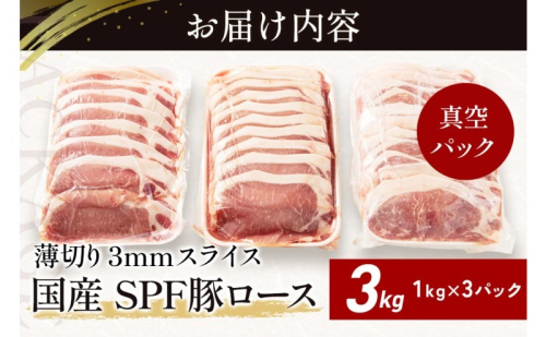 - 北海道産 SPF豚ロース 3kg 3mmスライス 冷凍 豚ロース 豚肉 ぶた肉 ロース 精肉 熟成 豚丼 とんかつ ポークソテー ポーク 3キロ 北海道 滝川市