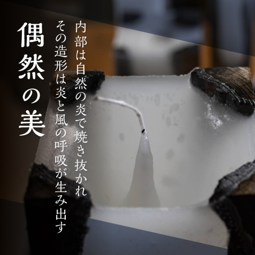内部は自然の炎で焼き抜かれ、その造形は炎と風の呼吸が生み出す偶然の美。