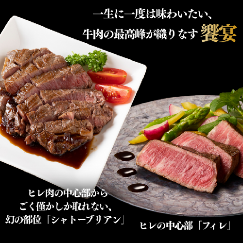ヒレ肉の中心部からごく僅かしか取れない、幻の部位「シャトーブリアン」と、ヒレの中心部「フィレ」を組み合わせた、これ以上ないほど贅沢なセットです。