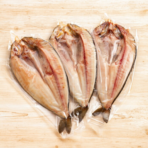 肉厚で脂ののった希少な特大サイズの真ほっけを手作業で丁寧に開き、独自工程により余計な水分を取り除き旨味を凝縮させました。甘塩に仕上げており、醤油や大根おろしなどと一緒にお好みでお召し上がりください。真空パックでお届けいたします。
