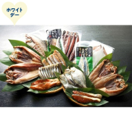 紅鮭切身5切、冷凍帆立貝柱8玉×2、砂出ししじみ250g、鮭親子漬け150g、一夜干し真ホッケ開き(大)2枚、一夜干しなめたかれい1枚、一夜干しキンキ開き(大)1枚、銀がれいみりん2切