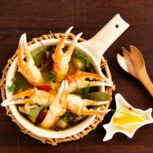 流氷がはぐくむ豊かな海で、毛ガニ・ズワイガニ・タラバガニの三大ガニのほか、ホタテ、鮭などの豊富な魚介類を味わえます。