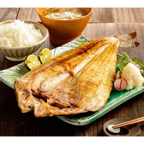 肉厚で脂ののった希少な特大サイズの真ほっけを手作業で丁寧に開き、独自工程により余計な水分を取り除き旨味を凝縮させました。甘塩に仕上げており、醤油や大根おろしなどと一緒にお好みでお召し上がりください。真空パックでお届けいたします。