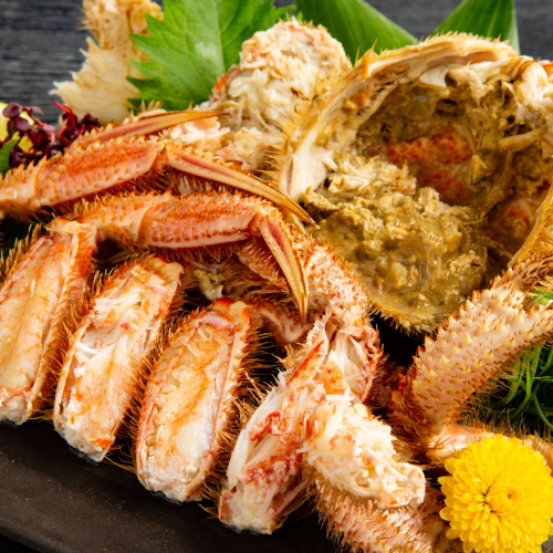流氷がはぐくむ豊かな海で、毛ガニ・ズワイガニ・タラバガニの三大ガニのほか、ホタテ、鮭などの豊富な魚介類を味わえます。
