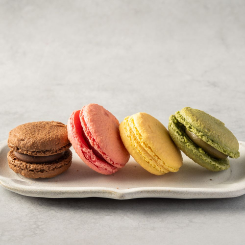 北海道産の生クリームを使っガナッシュを挟んだ「抹茶」「パッション」「フランボワーズ」「ショコラ」のセットです。