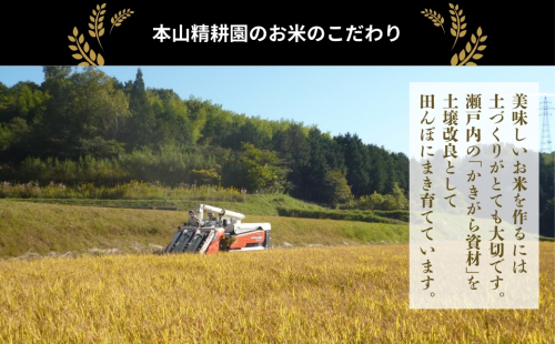 また、美味しいお米を作るには土づくりがとても大切です。本山精耕園では、瀬戸内の「かきがら資材」を土壌改良として田んぼにまき育てています。