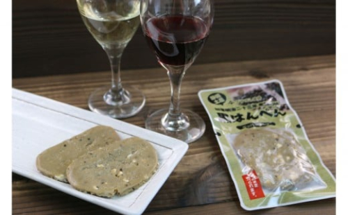 さすぼし蒲鉾自慢の黒はんぺんに、黒コショウとチーズを練り込みました。チーズのコクがワインにおすすめです。
