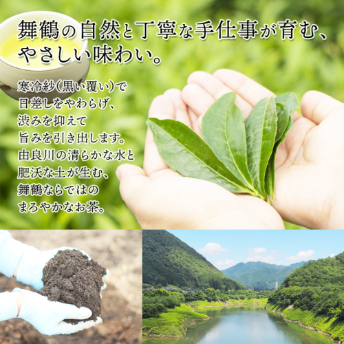 茶葉は、由良川流域の砂質土壌と霧に恵まれた環境でムラなく均一に育ち、特有のまろやかな旨みが魅力です。
