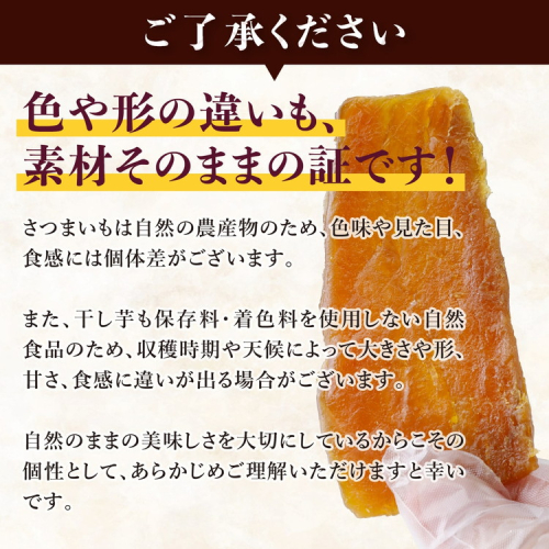 ※収穫された紅はるかは、干し芋として加工する前に約1か月間熟成させています。そのため、干し芋の在庫状況によっては、配送までに最大で1か月程度かかる場合がございます。あらかじめご了承ください。