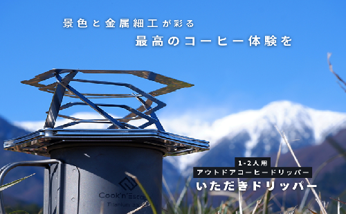 【BEAMS JAPAN監修】 いただきドリッパー 駒ヶ根市 コーヒードリッパー アウトドア キャンプ 登山 立体螺旋構造 1-2杯用 スリム収納 ステンレス 変形ギミック 携帯用