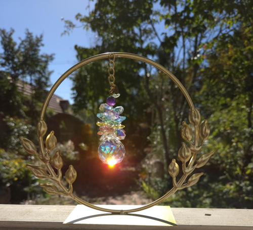 窓際に置くだけで、日差しが当たるたびにクリスタルがきらめき、虹玉が部屋いっぱいに広がります。皆さんをやさしさに包み込む癒しのインテリアアクセサリーです。北海道池田町で作られるワインや美しい景色をモチーフに生み出された愛が詰まった返礼品です。天然石とクリスタルを使用し、おひとつおひとつ丁寧に手作業で作り上げていますので、心も体も癒されるそんな素敵な時間をお楽しみください。