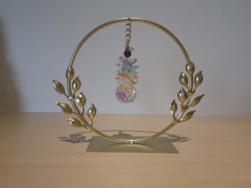- 窓際に置くだけで、日差しが当たるたびにクリスタルがきらめき、虹玉が部屋いっぱいに広がります。皆さんをやさしさに包み込む癒しのインテリアアクセサリーです。北海道池田町で作られるワインや美しい景色をモチーフに生み出された愛が詰まった返礼品です。天然石とクリスタルを使用し、おひとつおひとつ丁寧に手作業で作り上げていますので、心も体も癒されるそんな素敵な時間をお楽しみください。