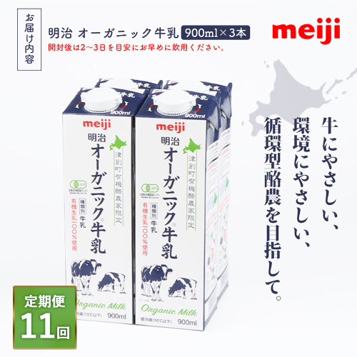配送地域限定 定期便11回 明治オーガニック牛乳 900ml 3本|定期便 明治 牛乳 オーガニック オーガニック牛乳 オンライン 申請 ミルク みるく 牛乳 ふるさと納税 健康 体にいい 乳製品 生乳 乳 牛 お取り寄せ ワンストップ マイページ 明治フレッシュネットワーク 恵庭市