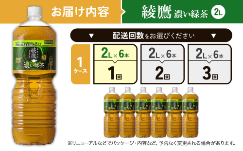 - 綾鷹 濃い緑茶 2L PET【コカ・コーラ】ペットボトル 1ケース(6本) セット お茶 緑茶 抹茶 日本茶 茶葉 カテキン 内臓脂肪 皮下脂肪 健康 機能性表示食品 宮崎県 えびの市 送料無料