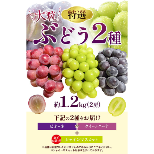 - 特選 大粒 ぶどう 2種 セット 約1.2kg ( 2房 ) シャインマスカット + ピオーネ or クイーンニーナ 株式会社日本植生グループ本社 NISSHOKU FARM《9月下旬-12月末頃出荷》ブドウ 送料無料 岡山県 浅口市 【配送不可地域あり】 (離島)