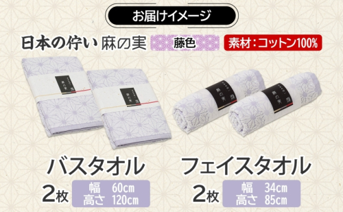 - 日本の佇い 麻の実 フェイスタオル&バスタオル 各2枚(藤色)