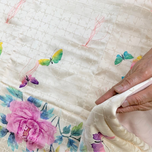 思い出の着物の生地を使って肌掛ふとんにリメイクします。