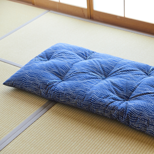 - 天然繊維 手作り 木綿わた入り 長座布団(青)