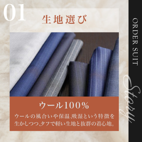 幅広いビジネスシーンに対応できる、スタンダードながら洗練されたオーダースーツです。