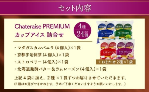 【シャトレーゼ】 Chateraise PREMIUM カップアイス 詰合せ 24個入 セット 4種 計24個 バニラ 抹茶 ストロベリー 発酵バター & ラムレーズン