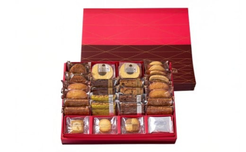 ドライフルーツやナッツの風味が豊かな『ケーク・オ・フリュイ』、濃厚なショコラ生地を丁寧に焼き上げた『ショコラ・オランジュ』、一層一層を丁寧に焼き上げた『ノーテンクーヘン』、バター風味際立つ『ガトーバスク』、2種類のごまの香ばしさ・ココアシュガーが甘く香るパイ『フリューゲルパイ セサミ』、アーモンドスライスをふんだんに使用したサクサク食感の『フロランタン』、シンプルでくちどけの良い『バターサブレ』、焦がしバター・挽きたてのアーモンドプードルをたっぷりと使用した生地をこんがりと焼き上げた『ヴィジタンティーヌ』、しっとりとした食感の『バウムクーヘン』、素材の美味しさをぎゅっと閉じ込めバラエティ豊かな味が楽しめる『クッキー』の詰合せです。