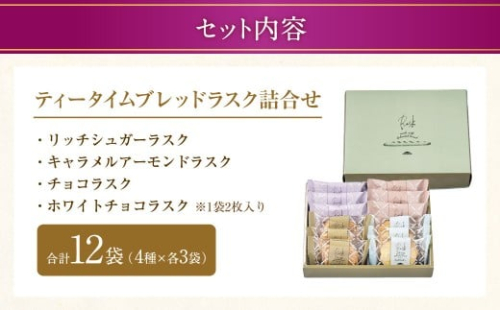 【シャトレーゼ】 ティータイム ブレッドラスク 詰合せ 12袋入 4種類 リッチシュガー キャラメルアーモンド チョコ ホワイトチョコ