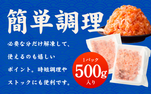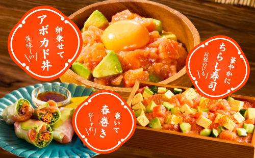 大きめの粒子に仕上げることで、サーモン本来の豊かな旨みとしっかりした食感を存分に味わえるのが特長。刺身や海鮮丼、ポキ、手巻き寿司などの 和洋問わず多彩な料理に対応し、プロの現場から家庭の食卓まで幅広く活躍します。