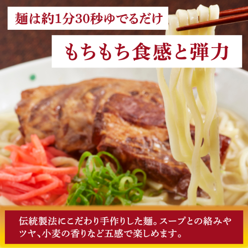 こだわりの生麺が自慢の一品です。生麺、液体そばだし、三枚肉(味付豚肉)がセットになっています。