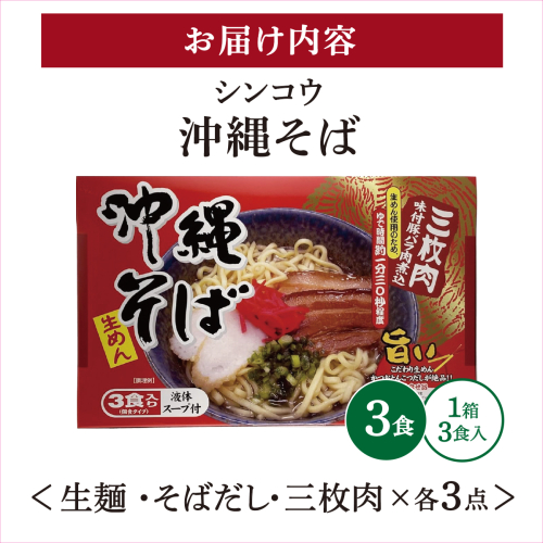 シンコウ 沖縄そば 3食 箱入 1パック I 沖縄そば ご当地グルメ 麺セット お取り寄せ 沖縄料理 沖縄県 南城市 ふるさと納税 うちなーむん合同会社