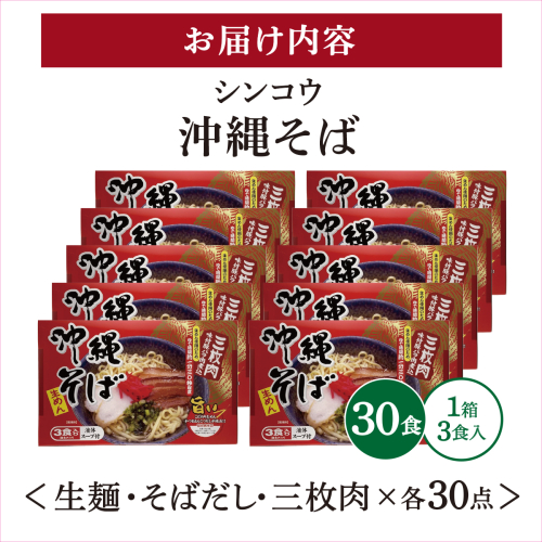 シンコウ 沖縄そば 3食 箱入 10パック I  沖縄そば ご当地グルメ 麺セット お取り寄せ 沖縄料理 沖縄県 南城市 ふるさと納税 うちなーむん合同会社 2497238 - 沖縄県南城市