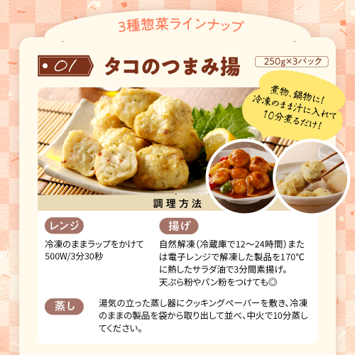 - ・えりも産タコのつまみ揚250g×3パック