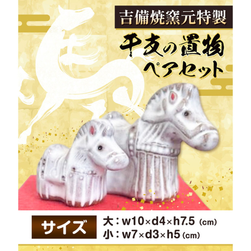 商品情報:干支の置物 午 ペアセット 名称:工芸品 内容: 大:w10×d4×h7.5(cm)×1個 小:w7×d3×h5(cm)×1個 配送方法:常温便でお届けします。 提供元:吉備焼窯元 ※画像はイメージです。