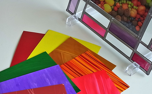 特殊フィルムと鉛リード線で制作するステンドグラス風のティッシュケース。1回2時間、2レッスンで制作します。火を使わず安全に、美しい自分だけの作品が出来上がります。デザインも数種類から選べます。