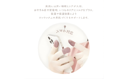 絹のおもてなし おやすみシルク手袋 1双【選べる色】オフホワイトor ピンク /シルク レディース 婦人 美肌ケア 美容 就寝 スマホ スマートフォン対応 高級シルク ギフト【mika-oya-oyasumi】